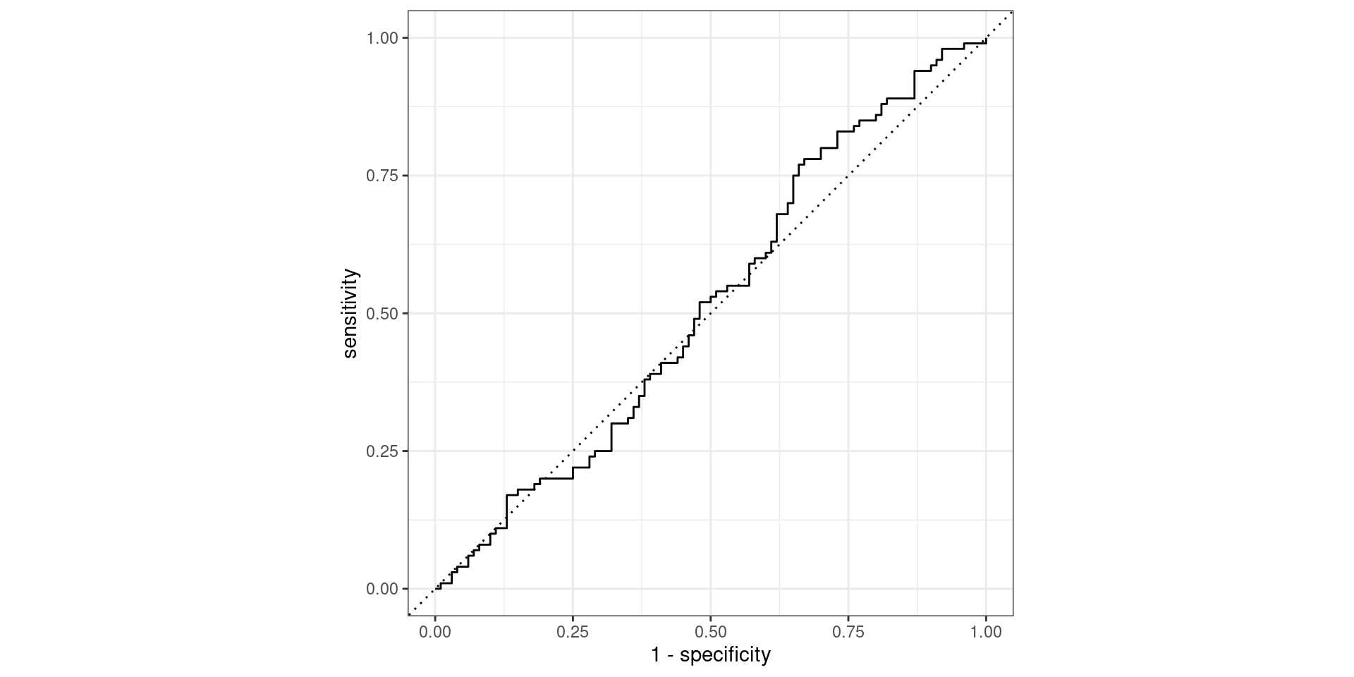 roc_metrics(default_test_wprobs, truth = default, estimate = knn_preds, event_level = "second") |> kable()| .metric | .estimator | .estimate |