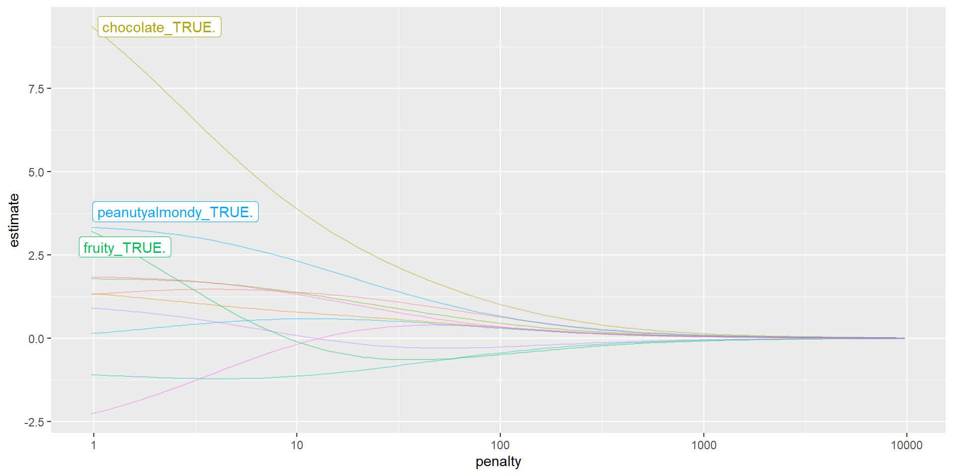 lasso10_fit <- lasso10_wf |> fit(candy_train)all_coefs <- bind_cols(model = "ols", tidy(ols_fit)) |>
