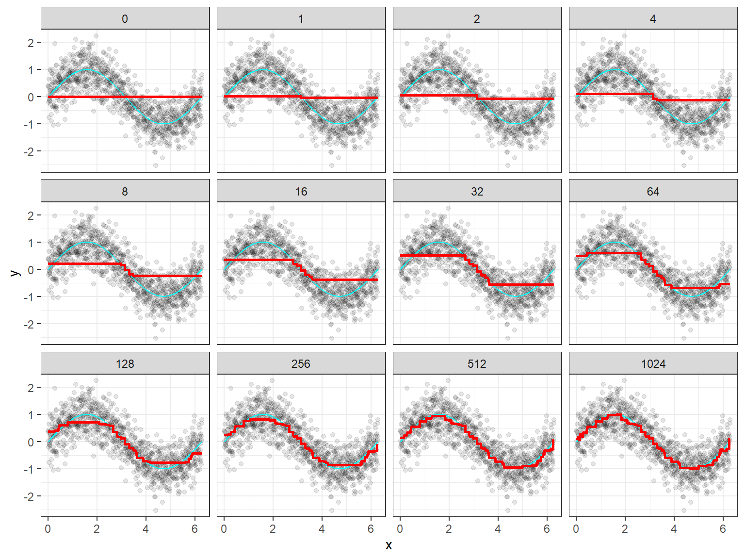 Let \(B\) be the number of trees you want to fit and \(d\) the maximum number of splits